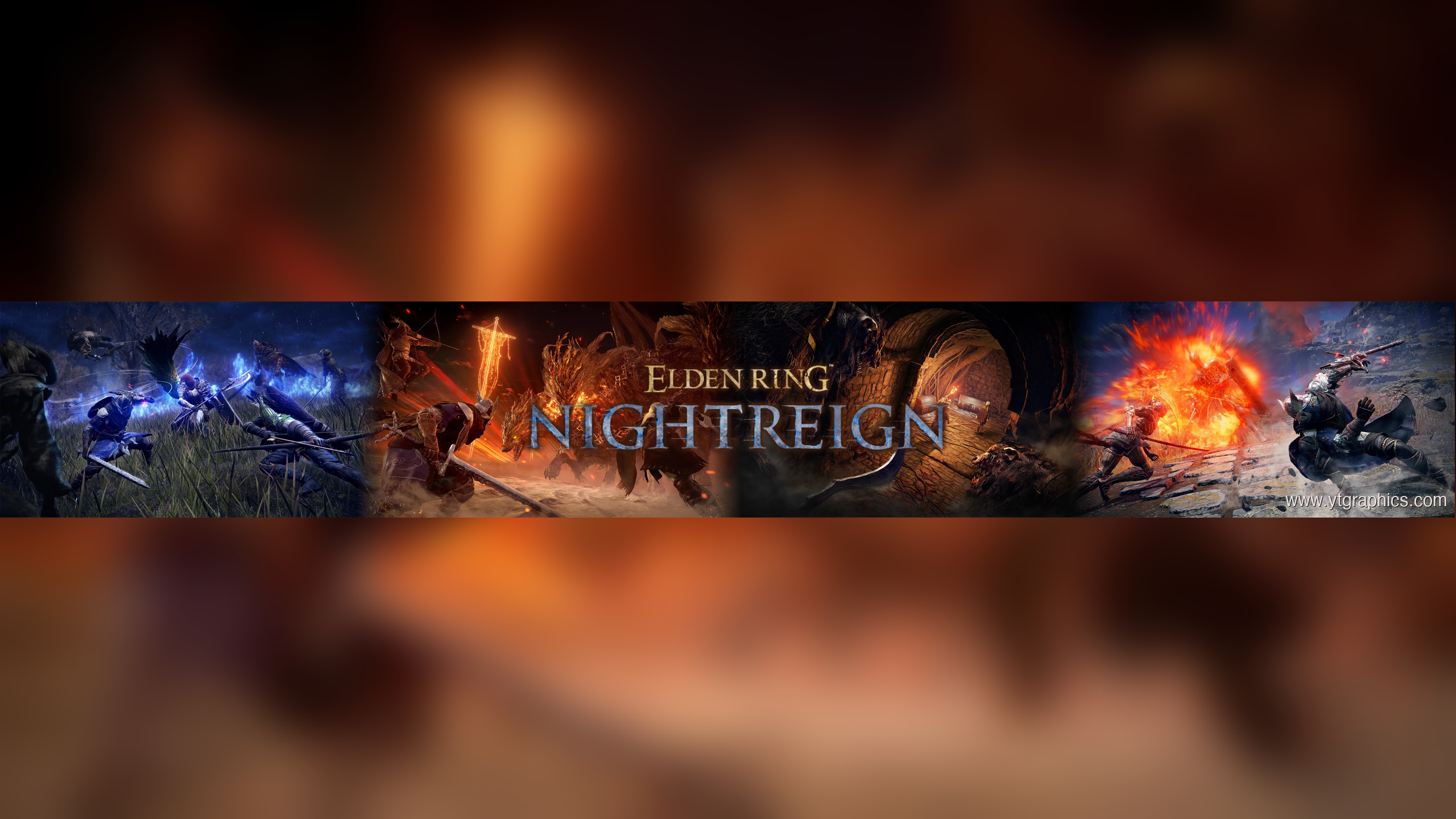 This custom YouTube banner showcases stunning official artwork from ELDEN RING NIGHTREIGN, featuring four distinct Nightfarer characters set against a dramatic atmospheric background with the official game logo prominently displayed. Designed specifically for gaming content creators, streamers, and YouTube channels covering ELDEN RING NIGHTREIGN gameplay, news, and walkthroughs. Optimized at 2560×1440 pixels to meet YouTube’s recommended channel art specifications with full mobile safe zone compatibility, this professional banner is perfect for YouTubers building their Soulslike gaming brand or covering FromSoftware titles. The banner features a subtle golden glow effect that captures the mystical and challenging atmosphere of the game’s dark fantasy world.