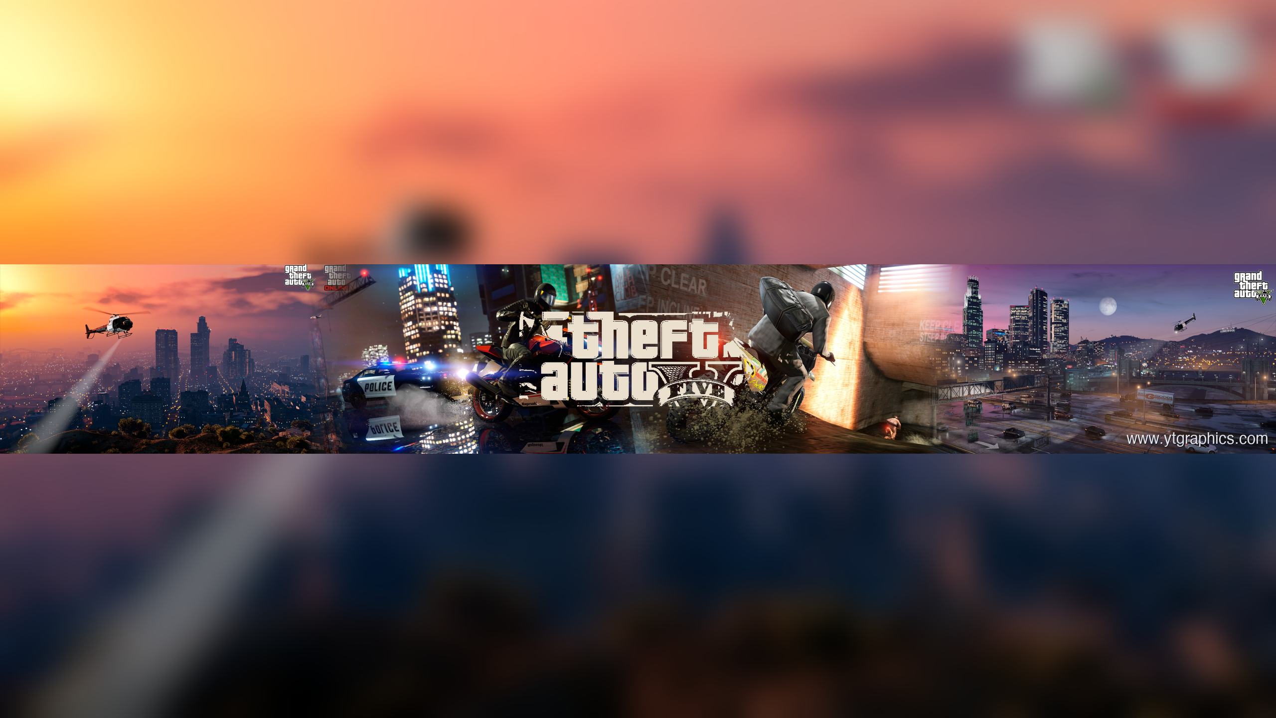 This custom YouTube banner showcases the iconic Grand Theft Auto V artwork with the signature cream-colored logo set against a vibrant composition of in-game scenes featuring helicopters, motorcycles, characters, and the sun-soaked streets of Los Santos. Designed specifically for gaming content creators, streamers, and YouTube channels dedicated to GTA V and GTA Online coverage, this banner features a distinctive green glow effect that captures the game’s energetic aesthetic. Optimized at 2560×1440 pixels to meet YouTube’s recommended channel art specifications, this banner ensures your GTA V content stands out with professional branding perfect for gameplay videos, heist tutorials, online mission guides, and streaming channels.